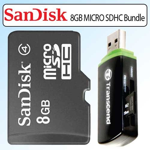 - SanDisk 8GB Micro SDHC Memory Card.- Transcend TSRDP5K TS-RDP5K P5 9-in 1 USB 2.0 Flash Memory Card Reader